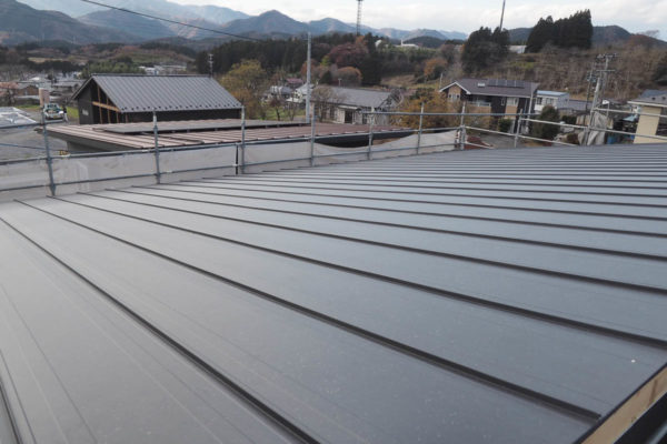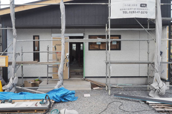 屋根が葺き終わり、外壁の施工もあらかた完了です。